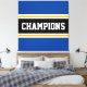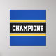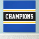 Den här färgstarka, sportiska designen har en atletisk CHAMPIONstext inuti ett stort svart vågrät i mitten av tävla rand med intilliggande gyllene gult och vita ränder mot yttre ränder i kant. Färg och text i den här utformningen kan vara personlig.