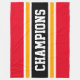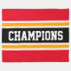 Den här vinnande lagverksdesignen har en atletisk stor CHAMPIONstext inuti ett stort svart vågrät i rand med intilliggande ränder för gult och vit tävla mot fetstilt, ljusröd yttre ränder i kant. Färg och text i den här utformningen kan vara personlig.