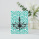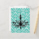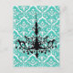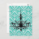 Chandelier Silhouette Teal Damask Vykort