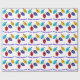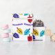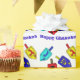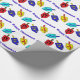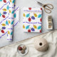 En lycklig Chanukah som slår in papper för gåvor som presenterar 4 dreidels med hebrébrev, som föreställer ett underbart mirakel, händde där!