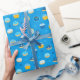 Lägg till lite helgdag och gnistra med den här roligten. Chanukah har en papper utformning. Lämplig för barn eller vuxnor, behov av företagsplås eller familjepresentationer. Det finns koordinerande presentsäckar, vävnadspapper och band för ett helt Chanukah-utseende, eller så kan du blanda och matcha med vår andra Chanukah som omsluter pappra mönster. Den här designen är i blått, vitt och guld med muffinsar, gelémunkar och judiska stjärnor.