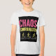 The "Chaos Coordinator" design is a bold and playful graphic that combines vibrant colors, dynamic typography, and simple iconography to convey a sense of controlled chaos. The design features the words "CHAOS COORDINATOR" in striking pink and yellow text against a black background, emphasizing contrast and energy. Below the text, three stick-figure runners add movement and humor, symbolizing the idea of managing disorder with purpose and enthusiasm.