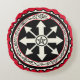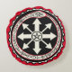 Runt dekorativ kudde med VooDoo-symboler, i rött och svart. Väldigt unikt!