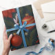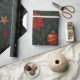 Wrap your gifts in rich, seasonal elegance with this charcoal-toned holiday wrapping paper. Featuring a lush botanical print of deep green pine, mistletoe, and vibrant holly berries—this design is accented with classic red ornaments, soft gold stars, and delicate snowflakes.