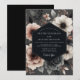 Experience a moody and dramatic romance with this elegant design. It features a painterly bouquet of creamy white anemones and dusty blush roses against a dark charcoal background. Accents of slate blue and shadowy leaves complete this sophisticated and artistic floral composition for a truly memorable union.