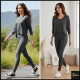 Charcoal Gray Woven Glitch Textured Plaid Leggings