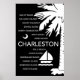 Charleston, SC-poster, har South Carolinas statssymboler, Palmetto träd och Crescent måne, tillsammans med Charlestons stora städer.