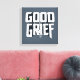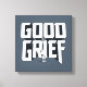 Kolla in det här sten-bandet där bilden med Charlie Brown framför brev som lyder: "Bra Grief".
