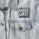 Kolla in det här sten-bandet där bilden med Charlie Brown framför brev som lyder: "Bra Grief".