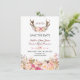 Rustik Rosa Blush Blommig Horn Monogram kortdesign med vackra akvarellhorn med rosa blush blomsterbukett, pilar med hjärtan och en blomsterbukett som avdelare; på baksidan blomsteravdelare med initialer på vit bakgrund. Använd verktyget Anpassa för att lägga till din information. Du kan ändra teckensnitt, färger. För matchande artiklar, besök min Blush Floral Antlers Collection.