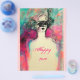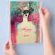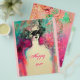 Elegant och vit dam med en sofistikerad venetiansk luddermask i pulserande rosa, grönt, fuchsia, svart, vit färg, inspirerad av konstkomedi (Commedia dell'Arte) och karnival av Venedig , vattenfärgning med folie guld och silver .