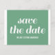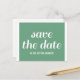 Charm Spara datum postkort i grönt och vitt med en fantasifull typografisk design. Detta trendiga och moderna spara datum postkort är lätt att anpassa med dina bröllopsdetaljer. För fler anpassningsalternativ, klicka på knappen Anpassa den.