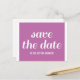 Charm Spara datum vykort i strålande fuchsia och vitt med en fantasifull typografisk design. Detta trendiga och moderna vykort för att spara datum är lätt att anpassa med dina bröllopsdetaljer. För fler anpassningsalternativ, klicka på knappen Anpassa.