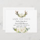En charmig, boho-design för speciella, nästan alla säsongens evenemang! Denna design har hjorthorn, vattenfärg vita, krämfärgade blomsterbuketter med eukalyptusblad och grönska, på vit bakgrund. Använd verktyget Anpassa för att lägga till din information. För mer, besök min samling Vita Krämfärgade Blommor med Horn.