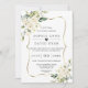 ALLT I EN inbjudan. Genom att ta med uppgifter och OSA (valfritt) på baksidan av bröllopsinbjudan i stället för på ett separat djurutrymmeskort kan du spara pappert. Utformning av elegant med känsliga vita vattenfärgblommor, eukalyptus foliage, faux guld ram, allt på vit bakgrund. Använda Anpassa verktyg om du vill lägga till din information. Om du vill ha matchande artiklar kan du besöka min Blommor-samling i vitt.