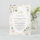 Elegant-kort med vattenfärgade vita blommor och grönt löv, ett faux guld ram, på vit bakgrund. På baksidan en blommigt-delare. Använda Anpassa verktyg om du vill lägga till din information. Om du vill ha matchande artiklar kan du besöka min delikata vitflödessamling.