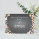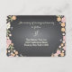 Vackra blommor i mjuk rosa, aprikos och rodnad med bär och blommor i elfenben mot en trendig svart skrivtavla bakgrund inramar din bröllopsmottagning kort i charmig stil. Perfekt för ett vår- eller sommarbröllop eller när en trädgård eller utomhus tema är en del av din speciella dag. Whimsical blandning av typografi ger roligt och flärd. Koordinerande produkter i denna svit inkluderar inbjudan, svars kort, porto, platskort, nummerkort, adressetiketter och present etiketter - allt du behöver för en charmig och komplett bröllopsensemble.