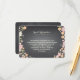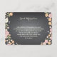 Vackra blommor i mjuk rosa, aprikos och rodnad med bär och blommor i elfenben mot en trendig svart skrivtavla bakgrund inramar din vigselinformationskort i charmig stil. Används för att inkludera vägbeskrivningar, information om lokalt hotellboende eller andra vigsel detaljer. Perfekt för en vår- eller sommarsvigsel eller när en trädgård eller utomhus tema är en del av din speciella dag. Whimsisk blandning av typsnitt tillför kul och flärd. Koordinerande produkter i denna svit inkluderar inbjudan, svars kort, porto, plats kort, nummerkort, adressetiketter och present etiketter - allt du behöver för en charmig och komplett vigsel ensemble.