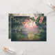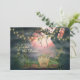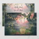 Detta bröllopsinbjudan för Rädda Datumet presenterar en charmigt kuslig gravkyrkogård. Det finns några gamla gravstenar med en bakgrund av snåriga träd dekorerade med charmiga blomsterlampor och en vacker mörkt rosa himmel.
