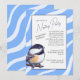 Bjud in dina gäster till en givande och hjärtlig fest för att förbereda sig för bebisen med denna charmiga chickadee-inbjudan. Med en söt, handritad chickadee och en rolig dikt om era aktiviteter på boendefesten, ger denna design en våg av fluffig glädje och friskhet. De mjuka blå ränderna skapar en trevlig och inbjudande stämning för att fira nya början. Med sin enkla och glada stil får denna inbjudan alla att engagera sig och dela sin glädje inför barnets ankomst.