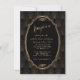 Rasande 20-talet Great Gatsby Vintage Art Deco Bröllopsinbjudan. En svart och guld 1920-talsinspirerad kortdesign med falsk guld folie vintage oval form och ornament, vacker Art Deco-stil som bakgrund. Använd Anpassa verktyg för att lägga till din information. Se även min Charmig Great Gatsby Art Deco-samling. 1920-talet var en tid med förbud, gangsters, hemliga fester, jazzmusik och flapperflickor.