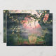 Detta Spara datum bröllopsmeddelande har en charmigt kuslig kyrkogård. Det finns några gamla gravstenar med en bakgrund av snåriga träd dekorerade med charmiga blomsterlampor och en vacker mörkt rosa himmel.