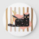 Tillsätt en touch av nyckfullhet och charm till valfritt utrymme med denna förtjusande svarta katt klocka i pastellfärger! Med en bedårande svart katt prydd med ömtåliga blommönster, mot en bakgrund av mjuka pastellfärger och lekfulla ränder, är denna design perfekt för kattälskare och de som älskar unik, konstnärlig inredning.