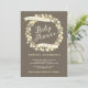 Denna älskvärda blommakrandesign i mjuk gult-, persika- och elfenbenkräm omringar den nätt typografin på denna kvinnliga baby showerinbjudan och är fastställd mot en delikat sobelbruntbakgrund. Eleganten och sött, är det en charmig inbjudan för någon neutral baby shower för gender för en pojke eller en flicka; och anslå speciellt för ett trädgårds- party, teaparty eller vårtidduschen.