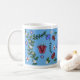 Starta din dag med en dos av muntert blommigt charm. I mugg finns en härlig mängd handdragna blommor i ljusblå bakgrund. Perfekt för morgonkaffe eller eftermiddagstest.