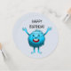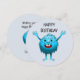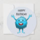 Den charmerande och shaggiga lilla blå varelsen med de stora tänderna säger grattis på födelsedagen.