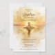 This design features a charming cross decorated with delicate wildflowers in watercolor effect, creating a soft composition full of natural beauty. The floral details blend lightly into the cross, forming a harmonious set that conveys delicacy and visual balance. The gold glitter effect adds a luminous and elegant touch that enhances the design with a refined sparkle. The atmosphere conveyed by the design is ethereal and elegant, where the softness of the watercolor effect and the golden shimmer combine to create a delicate, charming, and visually very special invitation.