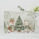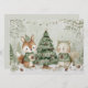 Charming winter scene with cute animals gathered around Christmas tree Merry Christmas card. Option to add your own greetings.