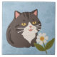 Charming Cute Gray Cat with a Chamomile FLower Kakelplatta