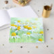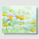 Frodiga ängar med charmiga tusenskönor bildar fram- och baksida. Den gyllengula färgen i blommornas centra som övergår till guld är i ett lättläst, flödande typsnitt för namnen på paret, den hedrade eller företaget eftersom dessa glada blommor är mycket anpassningsbara.