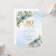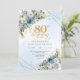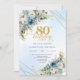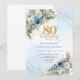 Charming Dusty Blue Floral Gold 80th Birthday Card Inbjudningar