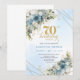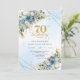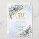 Charming dusty blue florals gold frame 70th bday inbjudningar