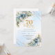 Celebrate a milestone in style with this elegant 70th birthday invitation featuring watercolor dusty blue and white flowers, soft eucalyptus greenery, and a shimmering gold frame. Designed in chic boho style with refined script lettering, this floral invitation is perfect for a classy 70th birthday party. Ideal for formal, garden, or luxury celebrations with a timeless, sophisticated touch.