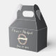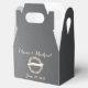 På en baksida av kritan är lådans framsida försedd med en underbar blommigt i elfenben, rosa och persikor och en banderoll som lyder: "Lyckligtvis alltid efter". Namn och bröllop är personliger i ett visuellt kursivt teckensnitt för en roligt och en mjuk elegant. Lägg till ditt eget personliga meddelande på baksidan.