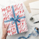 Har ett charmerande mönster där ord "kärlek" skrivs upprepade gånger i rött kursivt skript. Röda hjärtformer, både fyllda och skisserade, är inneslutna i ord. Den vita bakgrunden gör att den röda texten och hjärtan framträder och skapar ett tema med kärlek och kärlek.