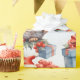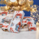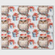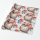 Snygga pappra inslag i uggla i Santa Hats, omgivna av färggranna gåvor och festliga dekorationer, perfekt för att ge helgdag paket en trevlig beröring.