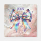 Den här snygga magneten visar en ljusreflekterande iriserande båge som är fylld mot en mjölkaktig bakgrund, där året markeras med ett elegant lila-typsnitt. Den är dessutom försedd med flera bevattningsdroppar som kompletterar dess beskärning. Den här chicen är en buggad magnet som är designad för att ge en förfinad beröring till din dekoration. Det kan vara personlig i vilket år som helst.