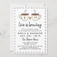 Charming LGBT-parets möhippa med två kaffe koppar med ett pride mellan regnbågarna. Lägg till initialerna i kopp. Kärlek brinner i ett penselskript. Lägg till inbjudan och information i ett snyggt teckensnitt, svart mot vit bakgrund.
