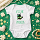 En söt och charmerande skjorta gjord särskilt för St. Patrick's Day, den här designen visningar en vacker svart katt med "Kiss Me I's Irish" skriven i trendigets grönt typsnitt. Underbar för din lilla, beställ din i dag! Cat Design: AMBillustrations http://www.etsy.com/shop/AMBillustrations/