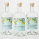 Limoncelloetikett för bröllop-favoriter och andra presenter med handritad gren-fullt av citroner, citronblommor och grönt löv mot en blek blå bakgrund. Lägg till namn i ett charmigt skript.