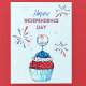 Fira den 4 juli med detta fina vykort för helgdag, som innehåller en charmig, handdragen kaka med röd, vit och blå frost. Fyrverkerier och stjärnor omger festen, fångar Independence day glädje och själ. Det här vykortet är perfekt för att skicka varmt önskemål till vänner och familj, med ett extra tryck av personlig text på baksidan för att göra ditt budskap ännu mer speciellt.