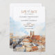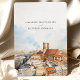 Ställ in scenen för en förtjusande bröllop i München, Tyskland, med detta "Spara datumkort", med en vackert utförlig vattenfärgsillustration av Münchens historiska cityscape. I teckningen fångas den ikoniska tornen av Frauenkirche och den gamla stadens charmerande tuppar, som återges i mjuka nyanser av himmel blå, varm terracotta och subtle beige, vilket ger en känsla av klassisk bayersk charm. Perfekt för par att planera ett destinationsbröllop med EU-elegans, detta kort återspeglar Münchens kulturarv och skönhet, skapar det som en minnesvärd keepé för dina gäster.