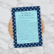 Njut av att spela det här Vem känner till Mamma Best? babyduschspel på en marin blå bakgrund med vitt polka dots. Mallar för framsidan, med en baby-bog i marinblått med tealbakgrund. Matchar Charming Navy Blue and Teal-samlingen.