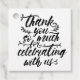 Vita bröllop tackar dig för att du tycker om taggen med "Tack så mycket för att du firar med oss" skriven i ett charmerande penselskript med små dockor löv och vingar. Lägg till namn och bröllop på baksidan.