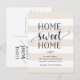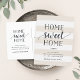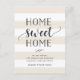 Välkomna och moderna flyttor berättar för vänner och familj om ditt nya, söta hem! Utformningen har en subtil, rand bakgrund i krämbeige och vit, med "hem sött hem" i mjukt svart skript och blocktypografi. Använda mallen fält om du vill lägga till anpassningsbarna i, nytt adress och namn. Informationen upprepas på baksidan med utrymme för mottagaradressering.