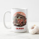 Det här charmerande personlig mugg har en gammaldags brand lastbil som illustreras i ett glatt stil med nedsmutsat färg framför en vintage solnedgång. Branden lastbil har information om vintagen, t.ex. rundat kant, stora strålkastare och en klassisk stege, ge det till en nostalgisk och vänlig vibe.
